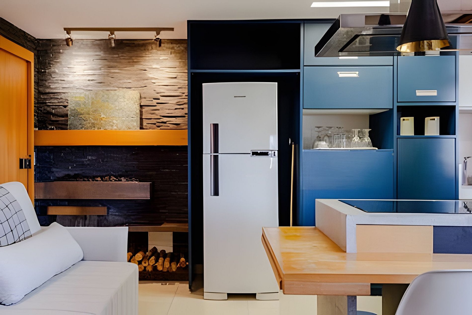 Área de estar com sofá/cadeira